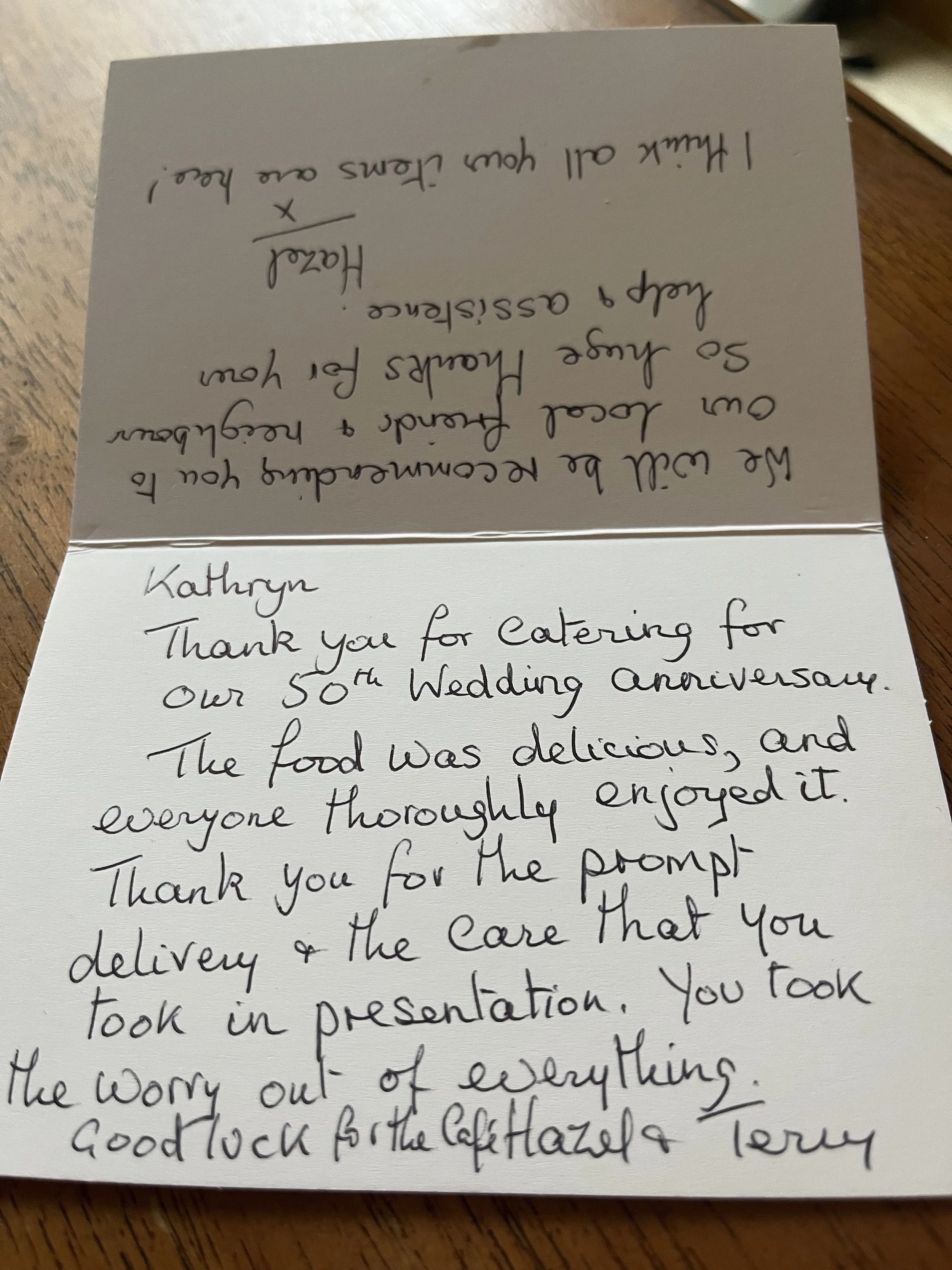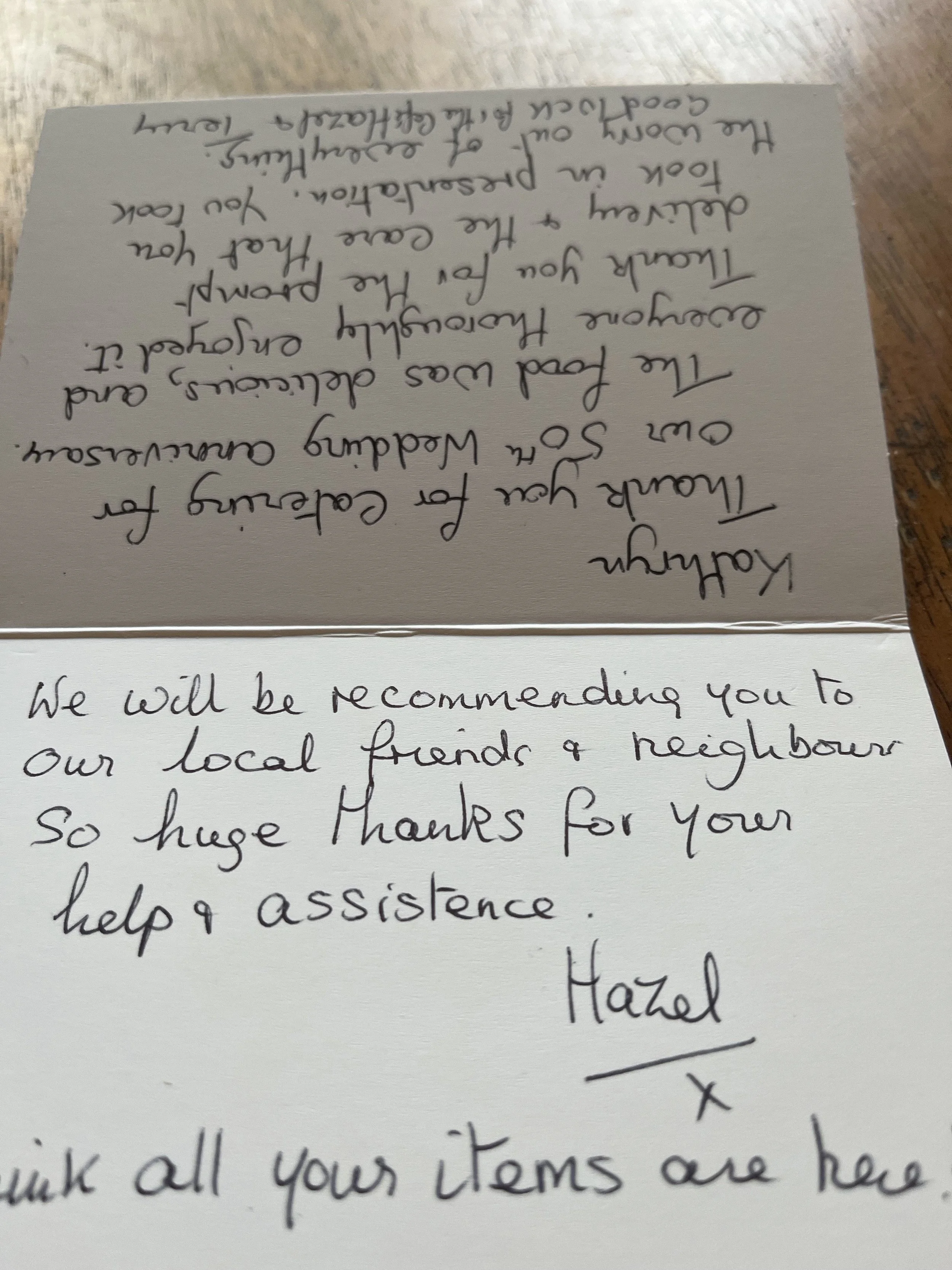 “Kathryn at Brickhill Bistro provided the catering for my Mother’s wake. Everything was arranged perfectly. Lovely refreshments, service and excellent too. - G.M. Leighton Buzzard.