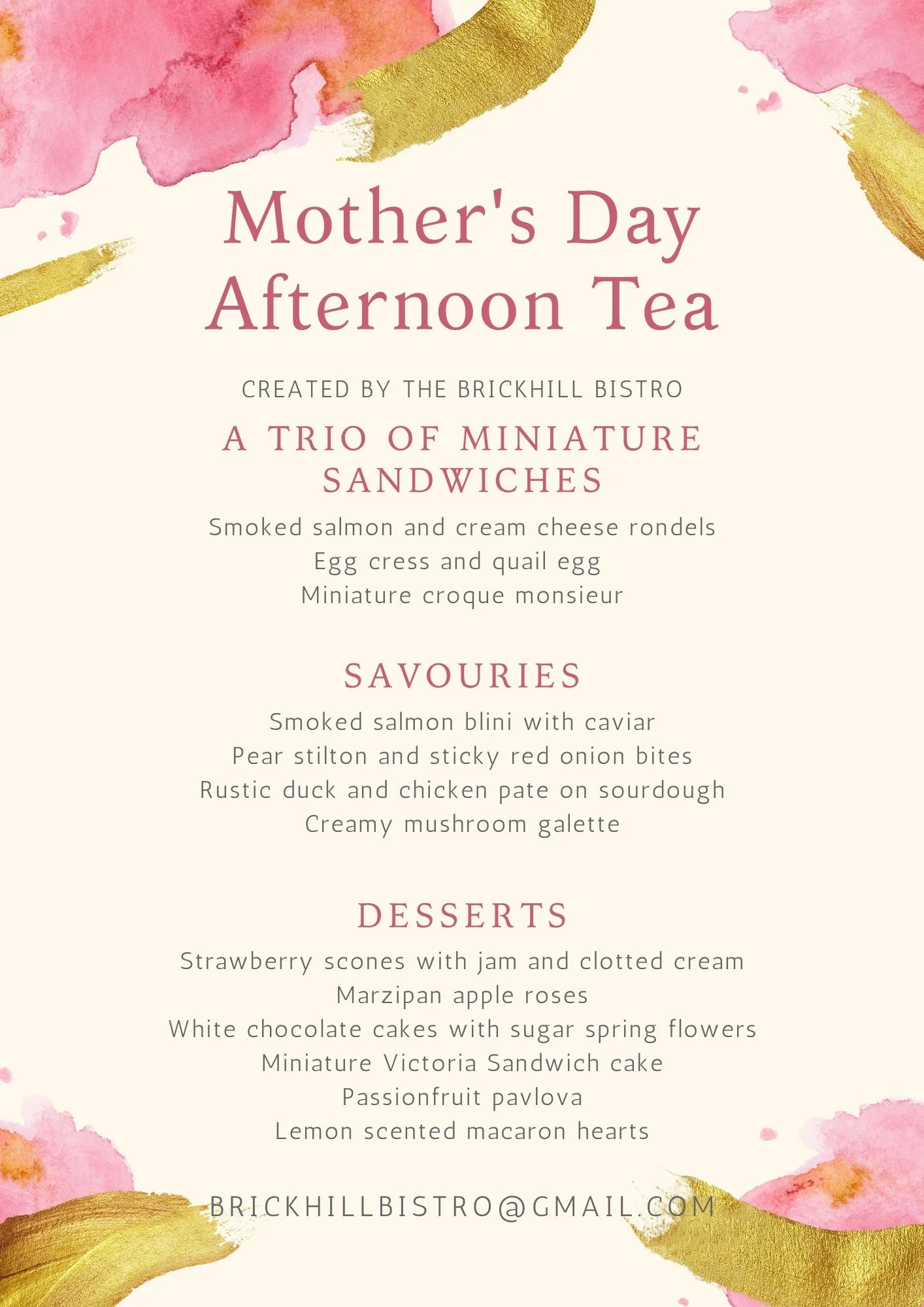 Enquire for more information and booking by emailing BrickhillBistro@gmail.com or call Kathryn on 07771 858582.